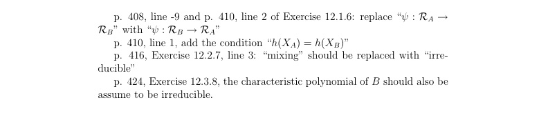 In addition to the people we have acknowledged in the prefaces to both the First and Second Editions, we are grateful to the many people who reported errata to the First Edition, including Noe Cuneo, David Handelman, Somaye Jangjoo, Sujin Shin, Yaokun Wu, and Yuki Yayama