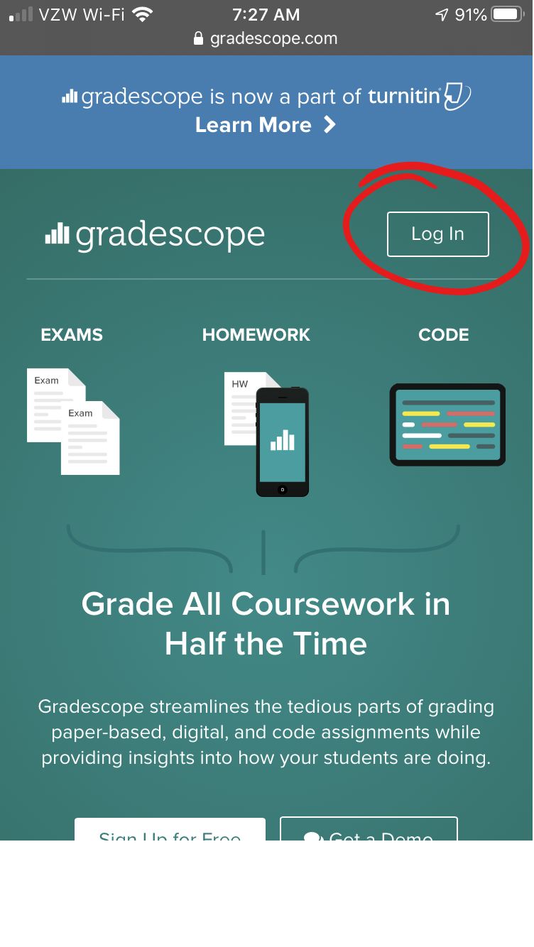 - Navigate to Gradescope.com and log in