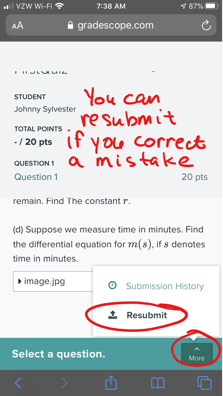 Submitting a Quiz/Exam in Gradescope using your phone