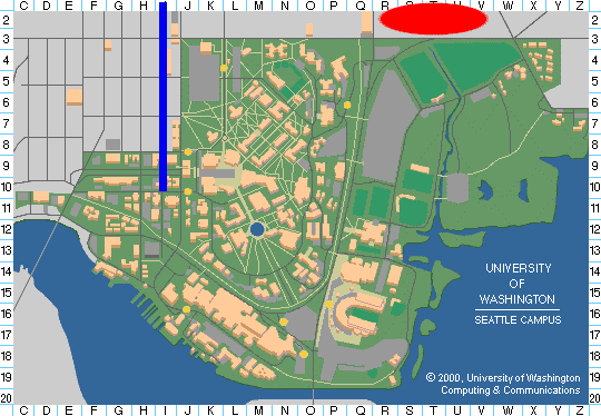 Food GuideThere are two clusters of restaurants close to the UW campus, one along the University Way (known locally as "The Ave" for some unexplained reason), and the second one in the University Village (an open air shopping mall). The two clusters are on the opposite sides of the campus, each within 5 to 10 minute walk (University Village is slightly more distant, the hill between the University Village and the main campus is steeper than on the side of The Ave). See the map at the bottom of this page. The red oval is the University Village. The blue line is The Ave.Restaurants on The Ave cater to students and so they look appropriately run down, to attract potential customers. The University Village serves yuppie customers. The food quality is not much different on both sides. You should expect to spend $10 (including tax and gratuity) on lunch in the University Village, and perhaps a couple of dollars less on The Ave. The number of restaurants is large, especially on the The Ave so we provide reviews for only a small number of them. Read our advice below or use your instinct. Fast food A food stand at the Student Union Building (HUB) on UW campus will be open at the time of the conference. It offers a limited choice of prepackaged foods, such as sandwiches, bottled drinks and (not bottled) coffee. The HUB is only two buildings away from the Electrical Engineering Building, where the talks will take place. Restaurants in the University Village:
